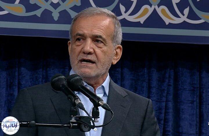 رئیس جمهور خاطر نشان کرد: ظلم این است که عدهای از دوستان و جناح خود را داشته باشیم و مردم را نداشته باشیم. بارها گفتهام، در سلامت، شغل، جایگاه و تقسیم منابع، مراعات انصاف جز اصولی است که باید به آن پایبند باشیم. به مردم و مقام معظم رهبری تعهد میکنم که برای مردم جز انصاف و عدالت راهی دیگر را نپوییم. قول میدهیم که با تمام وجودمان به این مردم خدمت کنیم، قول میدهیم که در راه شهیدان و کسانی که در راه مملکت جان خود را فدا کردند، تا پای جای بایستیم. بازگشت کشور به جایگاه واقعی خود و عزت و افتخار، جز با وحدت و قانونگرایی امکانپذیر نیست.