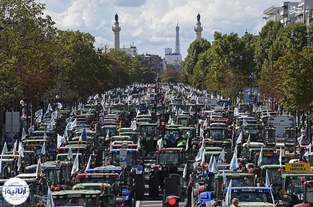 آرنا نیوز:: کشاورزان و دامداران معترض فرانسوی با تراکتورهای خود به خیابان های پاریس و لیون، پایتخت و دومین شهر بزرگ فرانسه آمدند تا این دو شهر را دچار ترافیک شدید کنند.